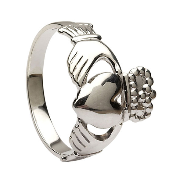 Men's 14ct White Gold Medium Weight Claddagh Ring