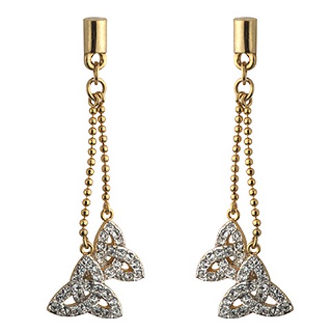 18ct Gold Plated, Crystal set Double Trinity Knot Tassel Earrings. Post style