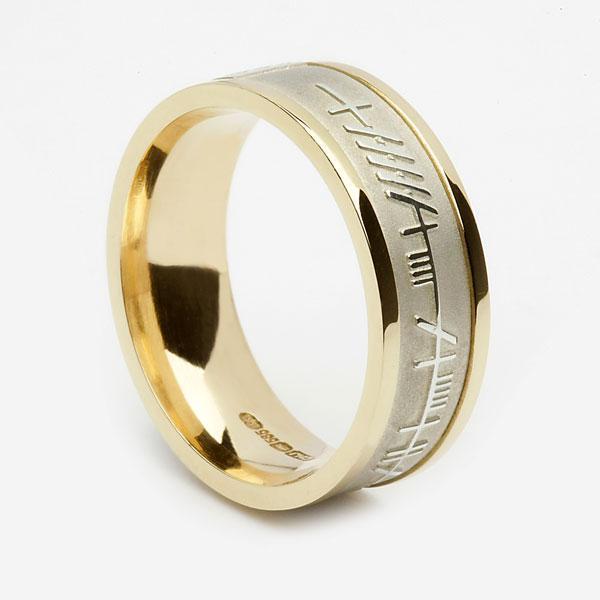 Ogham script is an early form of Old Irish and the first known Irish writing. Written in the ancient script each ring says My Soulmate.