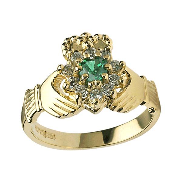 Ladies 10ct Gold Diamond and Emerald set Cluster Claddagh Ring