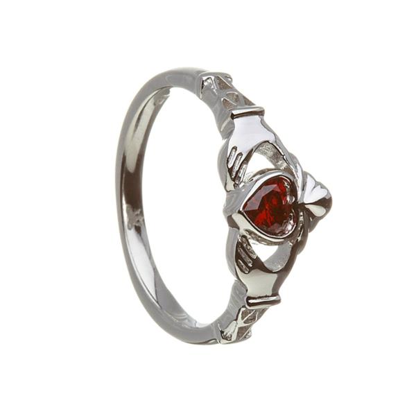 10ct Yellow Gold Claddagh - January Birthstone Ring - Cubic Zirconia Garnet, Silver image showing