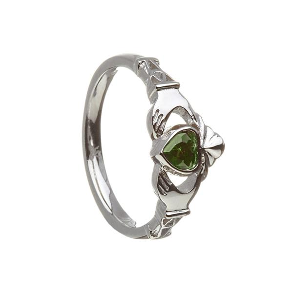 10ct Yellow Gold Claddagh - May Birthstone Ring - Cubic Zirconia Emerald, Silver image showing