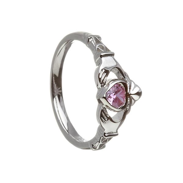 10ct Yellow Gold Claddagh - October Birthstone Ring - Cubic Zirconia Pink Tourmaline, Silver image showing