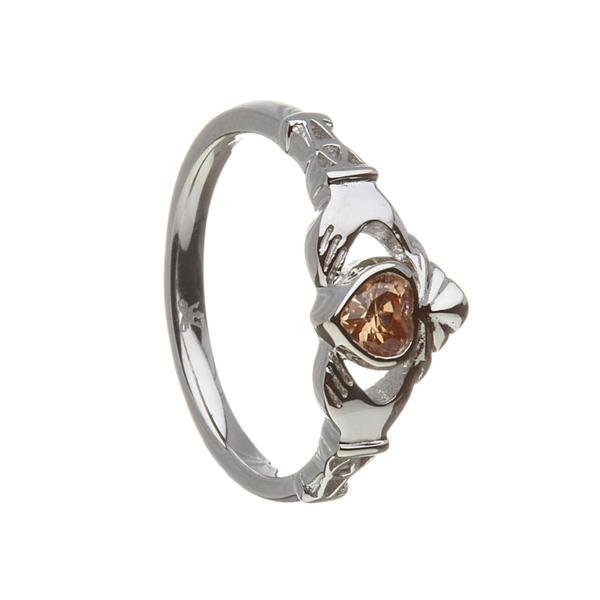 10ct Yellow Gold Claddagh - November Birthstone Ring - Cubic Zirconia Citrine, Silver image showing