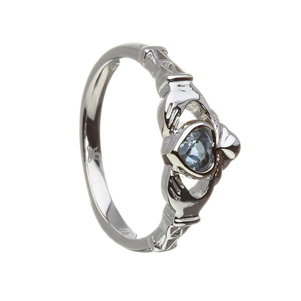 10ct Yellow Gold Claddagh - December Birthstone Ring - Cubic Zirconia Blue Topaz, Silver image showing