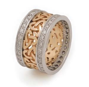 14ct Celtic Love Knot Yellow Gold with White gold Diamond set Rims- also available in all White gold