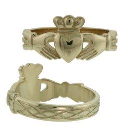 Ladies 10ct Yellow Gold Claddagh Ring with Celtic Weave shank