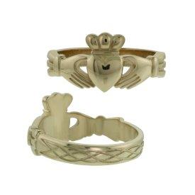Maidens 14ct Yellow Gold Claddagh Ring with Celtic Weave shank