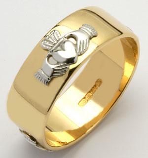 Men's 14ct Yellow Gold Claddagh Ring with 3 White Claddaghs