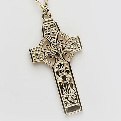 10ct Yellow Gold Ogham St Patrick & Columba/Kells High Cross on 18" inch chain