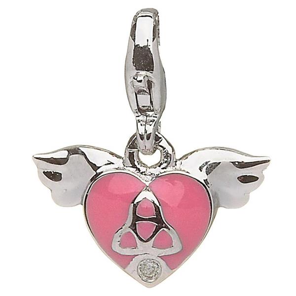 Irish Diamond set Pink Trinity Heart Charm - NO CHAIN SUPPLIED