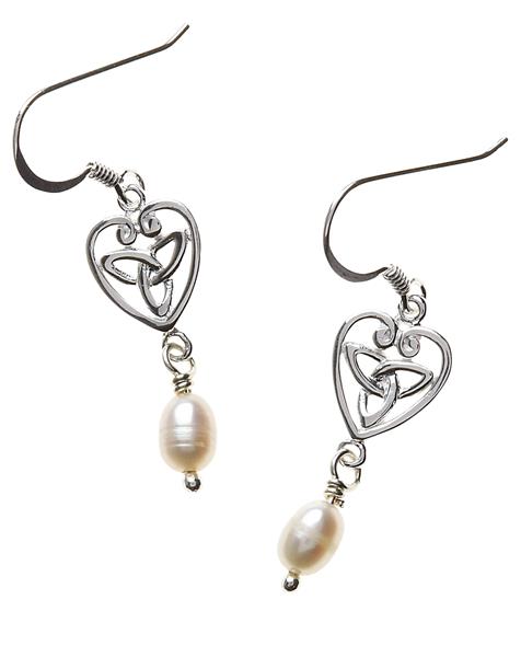 Irish Sterling Silver Celtic Love Knot inside Heart Pearl drop Earrings