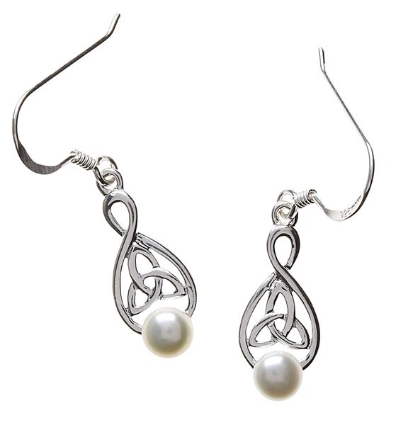 Irish Sterling Silver Celtic Love Knot and Pearl drop Earrings