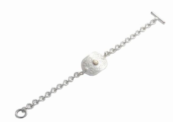 Irish Silver Tiffany-style Bracelet featuring panel embossed with 14ct Gold accents and a T-bar catch.