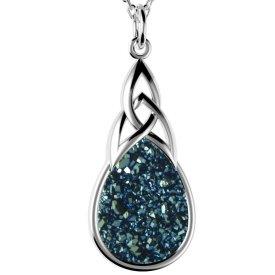 Irish Silver Celtic Love Knot Love Drusy Quartz stone Pendant on 18" inch chain.