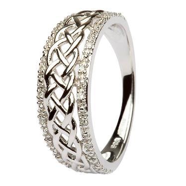 Ladies 14ct White Gold Diamond set Celtic Love Knot Wedding Ring