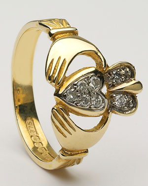 Ladies 10ct Gold Pavee Diamond Set Claddagh Ring