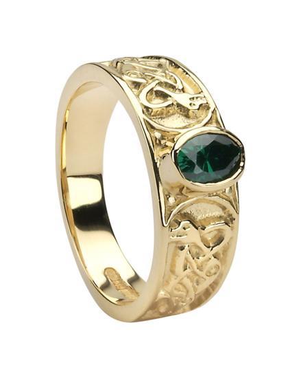 Unisex 10ct Gold Synthetic Emerald stone set Celtic Ring