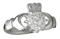 Irish Silver, stone set Cubic Zirconia Claddagh ring