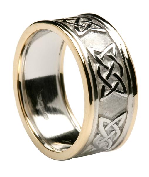 Men's 10ct White Gold Celtic "Lovers Knot" Wedding Ring with Yellow Gold Rims