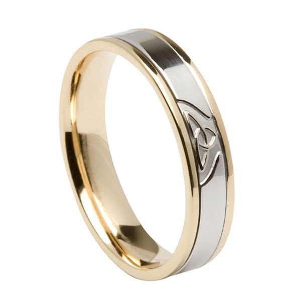 Men's 10ct Yellow Gold with White Gold Centre "Comfort Fit" Trinity Knot Wedding Ring
