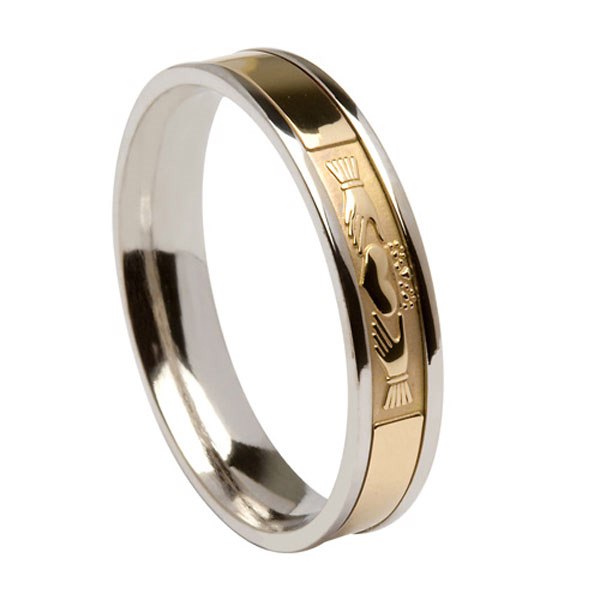 Ladies 10ct "Comfort Fit" Signature Claddagh Ring - Yellow Gold Centre with White Gold Rims