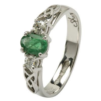 This gorgeous ring is sure to capture the Celtic heart of your love. The focus of the ring is, of course, the gorgeous oval emerald which commands the eye with its loveliness.