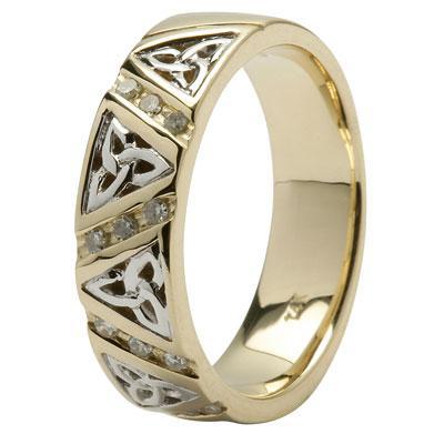 Ladies 14ct Yellow & White Gold 0.12ct Diamond set Comfort Fit Ring with Celtic Love Knots